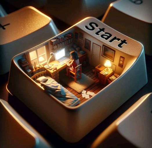 Bạn đã bao giờ tò mò điều gì ẩn chứa bên trong những phím bấm quen thuộc trên bàn phím máy tính? Hãy sẵn sàng kinh ngạc khi AI, biến một ý tưởng thành một cảnh tượng sống động: một căn phòng ấm cúng thu nhỏ bên trong phím "Start" khổng lồ.