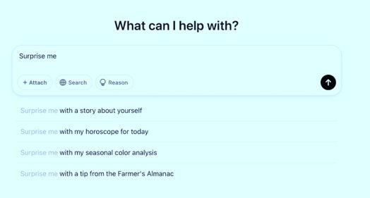 Ví dụ, nếu bạn nhấp vào Gây bất ngờ cho tôi, bạn có thể khám phá các Prompt như sau: