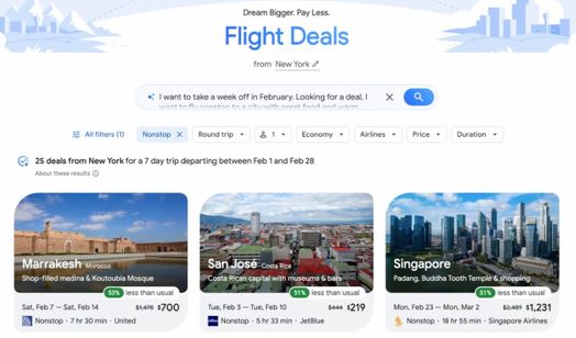 Các tính năng du lịch AI mới của Google tạo lịch trình, ưu đãi chuyến bay