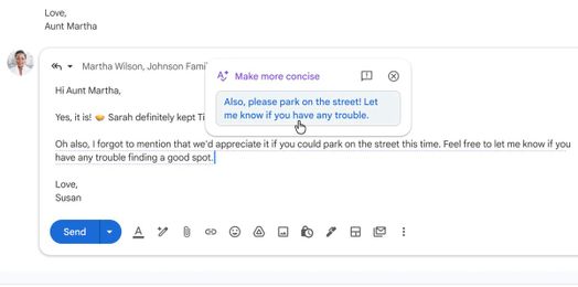 Gợi ý trả lời được cá nhân hóa: Người dùng Gmail có lẽ đã quen thuộc với Smart Replies, vốn xuất hiện dưới dạng gợi ý khi họ trả lời email. Những gợi ý này đã có ích nhưng hiếm khi hoàn hảo, đòi hỏi phải chỉnh sửa đáng kể. Phiên bản cập nhật sử dụng trí thông minh AI để hiểu rõ hơn ngữ cảnh của cuộc trò chuyện và đưa ra các gợi ý trả lời bằng phong cách và tông giọng cá nhân của bạn.