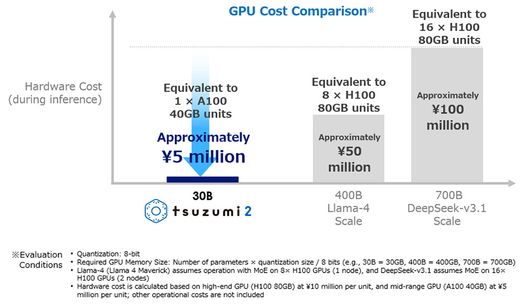 Đánh giá nội bộ của NTT về việc xử lý các yêu cầu hệ thống tài chính cho thấy tsuzumi 2 sánh ngang hoặc vượt trội so với các mô hình bên ngoài hàng đầu mặc dù yêu cầu hạ tầng nhỏ hơn đáng kể. Tỷ lệ hiệu suất trên tài nguyên này quyết định tính khả thi của việc áp dụng AI cho các doanh nghiệp nơi tổng chi phí sở hữu thúc đẩy các quyết định.