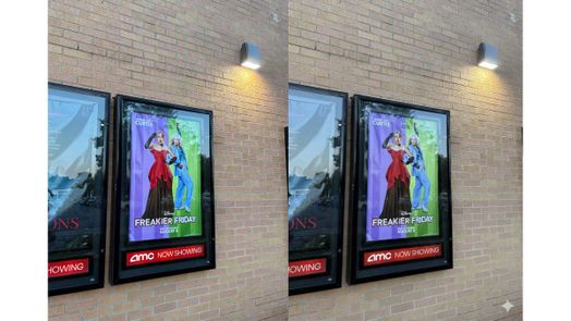 Tôi đã thử nhiều lần để Gemini loại bỏ phản chiếu khỏi một bức ảnh chụp áp phích phim Freakier Friday, nhưng chúng vẫn cứng đầu ở đó. Và càng cố gắng yêu cầu nó loại bỏ phản chiếu, chất lượng hình ảnh càng kém đi sau mỗi câu lệnh. Văn bản từng rõ ràng cuối cùng đã trở nên không thể đọc được sau khi tôi từ bỏ, chưa kể đến những hư hại ngẫu nhiên, trông đáng sợ gây ra cho khuôn mặt của Lindsey Lohan và Jamie Lee Curtis.